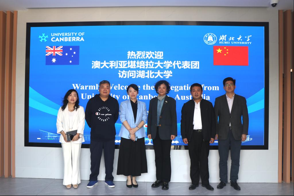 2025, Minister-Counsellor (Education and Research), Ms Alison Dell, from the Australian Embassy in Beijing on her visit to Hubei University. With Reece Cummings and Pinker Yao.