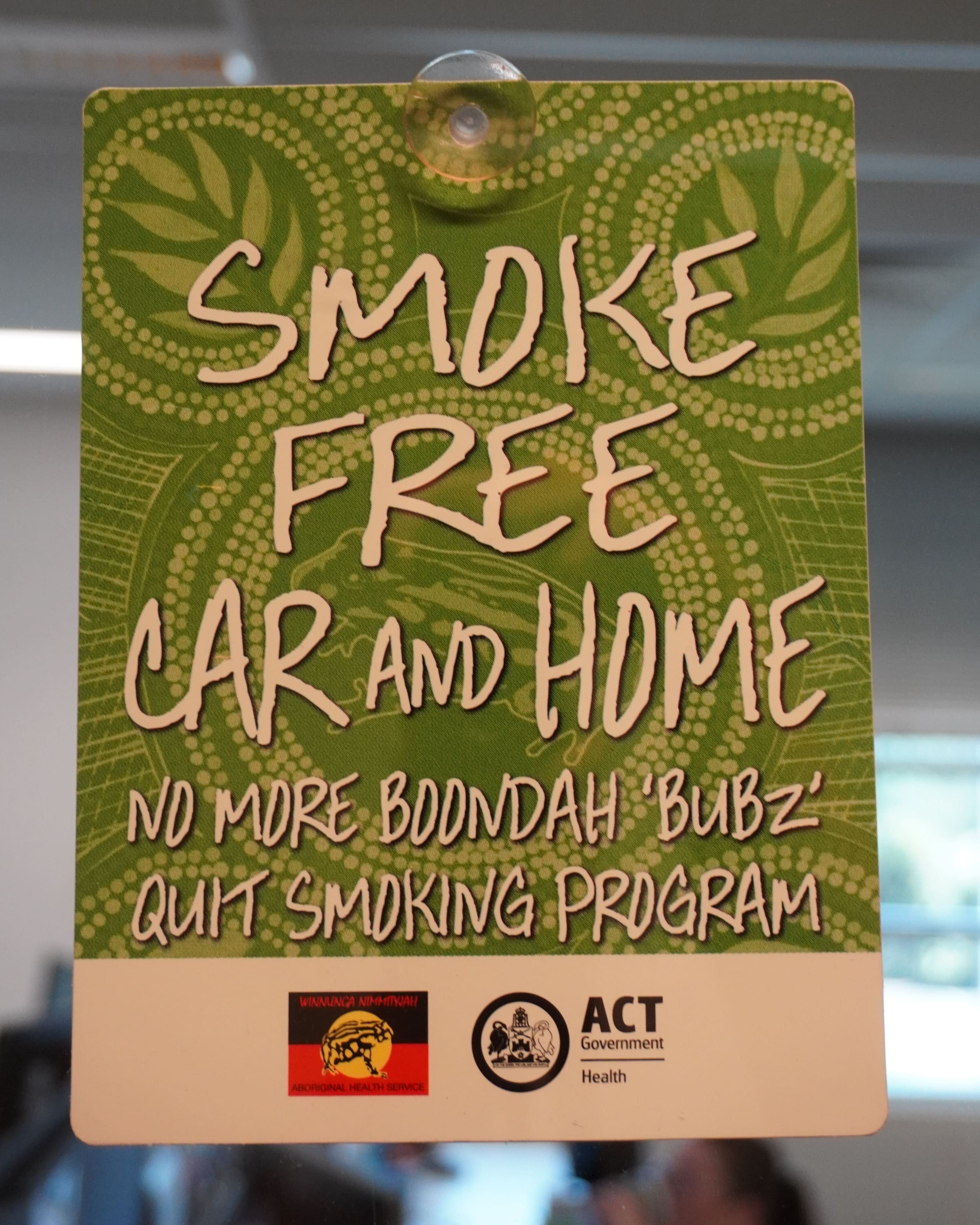 Winnunga’s Tackling Indigenous Smoking (TIS) team aimed to improve the health of Aboriginal and Torres Strait Islander people in the ACT by reducing tobacco use through community engagement activities. Since its start in 2010, the TIS Team developed local resources, branding and promotional materials such as those shown here. These resources supported education and engagement activities in schools, community events and workplaces to build knowledge about the harms of smoking, prevent uptake, support cessation and promote smoke‑free environments. The Team referred individuals ready to quit to Winnunga’s cessation support program ‘No More Boondah’.