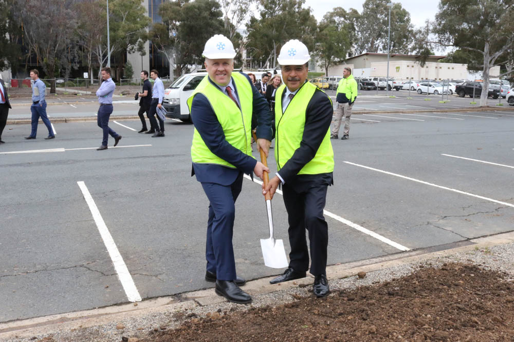 The centre is a partnership between the University, Icon Group and Cornerstone Building Developments (CBD), with University of Canberra Vice-Chancellor and President Professor Deep Saini and Icon Group CEO Mark Middleton turning the first sod on the site yesterday.