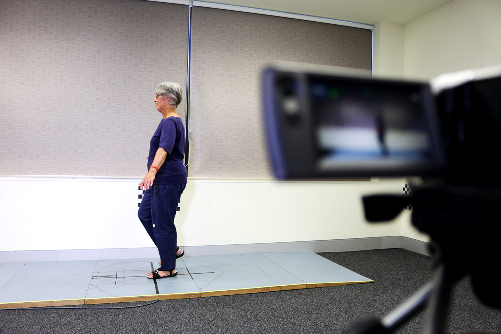 Using inexpensive video equipment, Ms Ismail is filming older people from different angles to compare their movement with the results of force-plate analysis.