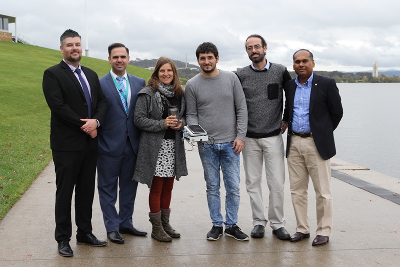 Assistant professor in network and software engineering Kumudu Munasinghe, research associate Adrian Garrido Sanchis, and Anke Maria Hoefer from ACT Frogwatch are aiming to streamline the process by which Frogwatch volunteers listen to and record frog calls in and around the ACT’s waterways.