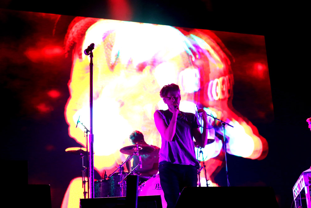 Over under the big top, George Maple’s attire – a neon bodysuit, silver trench coat and matching boots complimented her smooth vocals and had the crowd hanging on her every word. Next British duo Snakehips took to the stage and had everyone jumping with their electro pop melodies and dusty R&B beats. As the band’s name flickered across the stage in bright blue, they smashed out their hits ‘Cruel’ and ‘Don’t Leave’ and remixes of Bondax and The Weeknd, along with throwbacks to early 2000 hip-hop hits. Duo James Carter and Oliver Lee had the audience captivated by the thudding basslines and swirling synths.