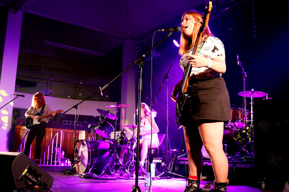 Next up was fellow locals Slow Turismo, who got the crowd buzzing with their funk rock melodies as the Refectory started to fill with eager music lovers. The quartet played their melancholy track, ‘You Were Dead’, got people grooving and swaying with indie track ‘Falter’ and their latest single ‘Pistol Powder’.