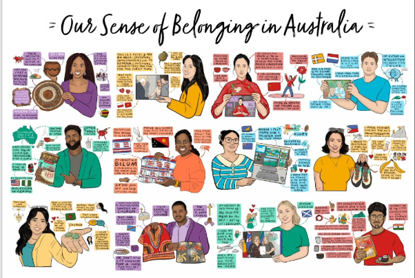 “Advancing belonging requires active steps to help people to feel ‘at home’ in our democratic society. It is a shared, ongoing process of weaving our stories together through everyday encounters, the assurance of cultural safety, and the building of mutual respect.”