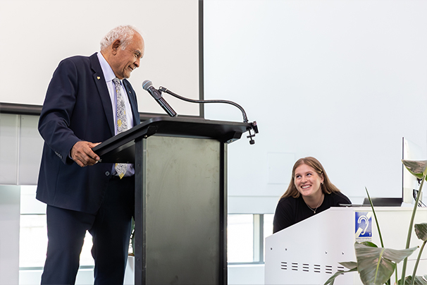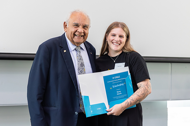 25 February 2026: Former University of Canberra Chancellor Emeritus Professor Tom Calma AO has presented the first scholarship in a program 15 years in the making.