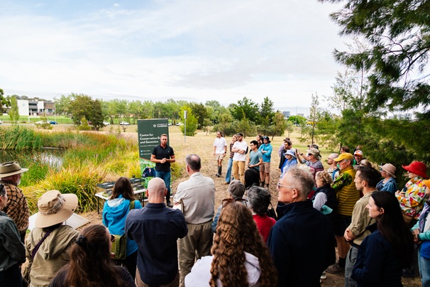 Joining the research team, partners and volunteers, guests included the ACT Conservator of Flora and Fauna Bren Burkevics, ACT Senator David Pocock, and Associate Professor Will Osborne, who first recorded the green and golden bell frogs’ decline and subsequent disappearance from the ACT, almost 50 years ago.