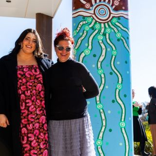 More on UC student unveils Indigenous art piece at Ngunnawal CentreBachelor of Medical Radiation Science (Medical Imaging) student and Narungga and Kaurna woman Alicia Mohamed-Engelhardt has unveiled a vibrant piece of art she created under the mentorship of Ngunnawal woman Delephene Fraser.