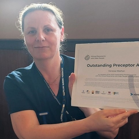 Upon receiving the award she said, “Thank you for the acknowledgement and I believe that initiatives like CPOP not only prepare students for the realities of clinical practice but also foster greater respect and understanding for the complexities of aged care. I'm proud to be part of this important work and to support the development of compassionate, skilled future nurses.”