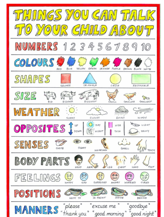 | Helping your child learn through talking (English) | Helpim Pikinini Blo Yu Long Toktok (Tok Pisen) | Things you can talk to your child about |