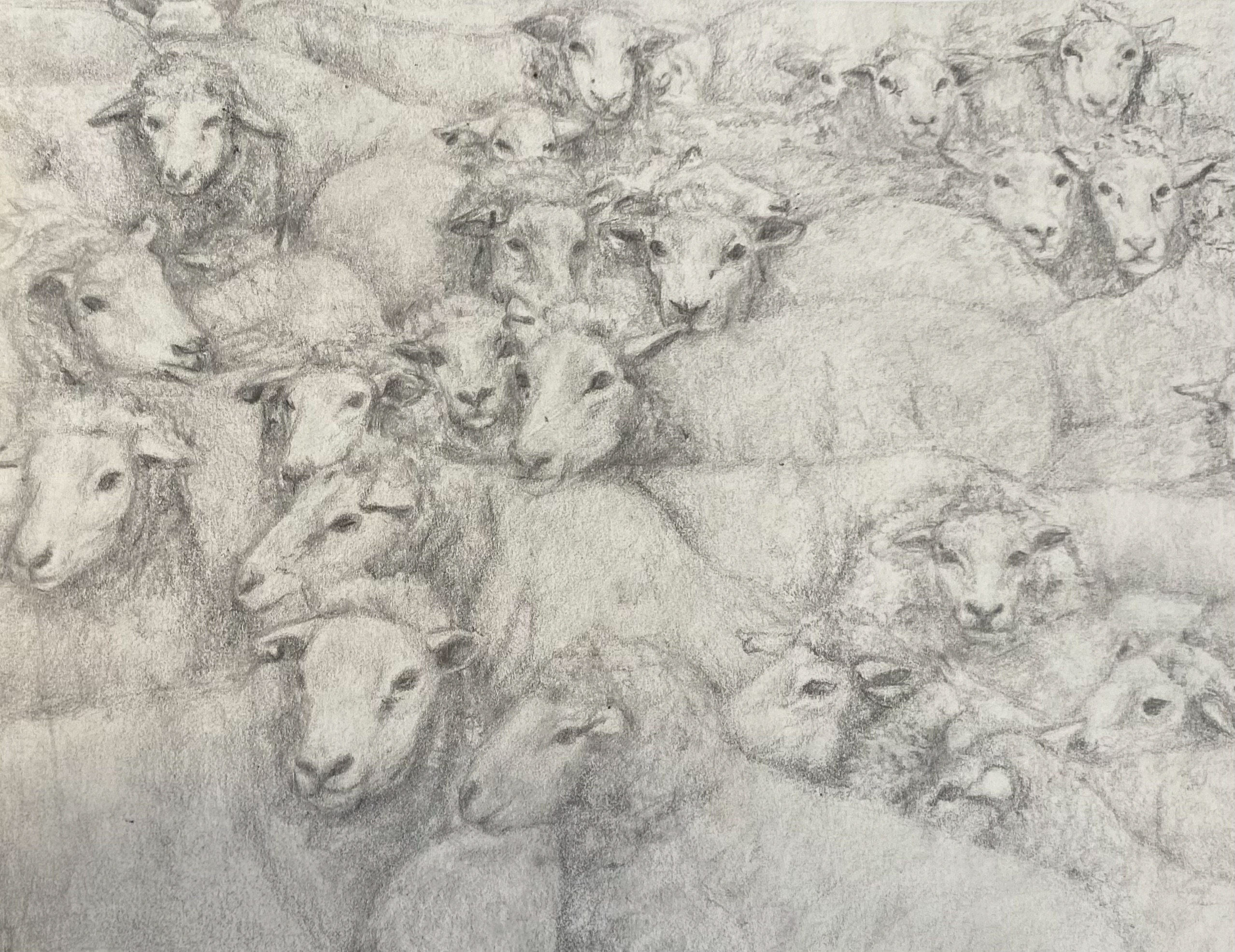 This is a graphite drawing of a crowd of sheep in stockyard. This work is a part of a larger body of work exploring the beauty of Wagga Wagga, regional New South Wales with a specific focus on the agricultural industry.