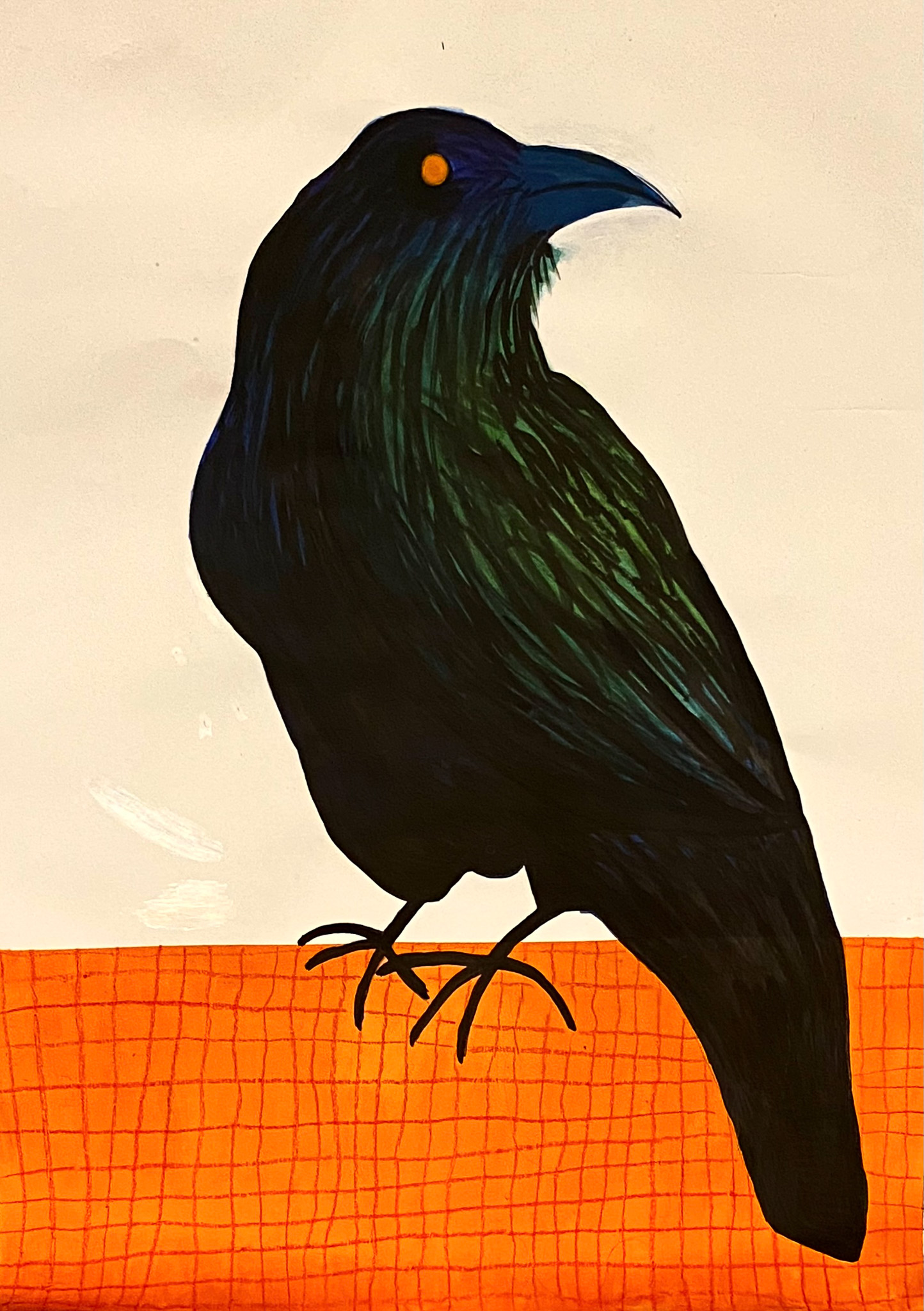Crow is a striking illustration, depicting a traditionally macabre symbol in a new light. The image’s juxtaposing dark subject and simplistic juvenalian style create a dynamic composition. Through proportion the painting also evokes a sense of unease.
