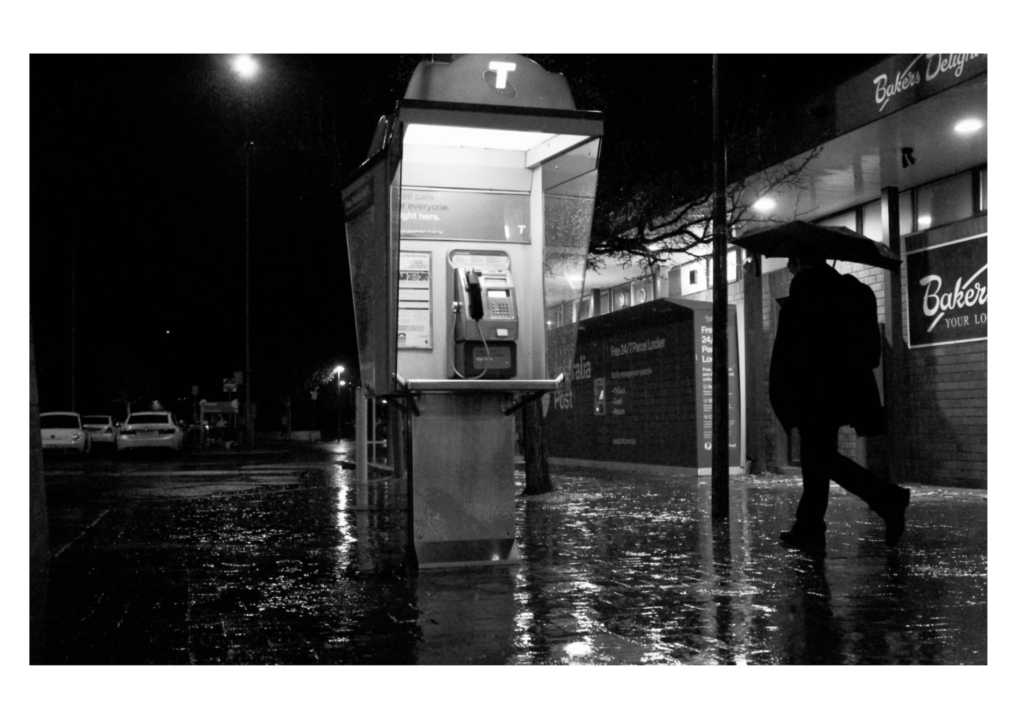 The process by which this piece was made was the most significant part of this work, at least, for me. I sat under a shelter in the rain waiting for someone to walk past and position themselves perfectly where I wanted them to be. I was conscious of everyone walking by, whether they were rushed, cheerful, or having a bad day. Nobody stops to notice anything anymore and I'm glad I had an opportunity to do so through this photograph.