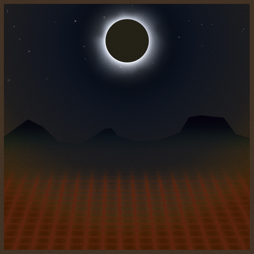 In Totality, the neon colours and rising sun of the outrun aesthetic have been replaced with ecliptic shades, adding a new twist to the nostalgic genre.