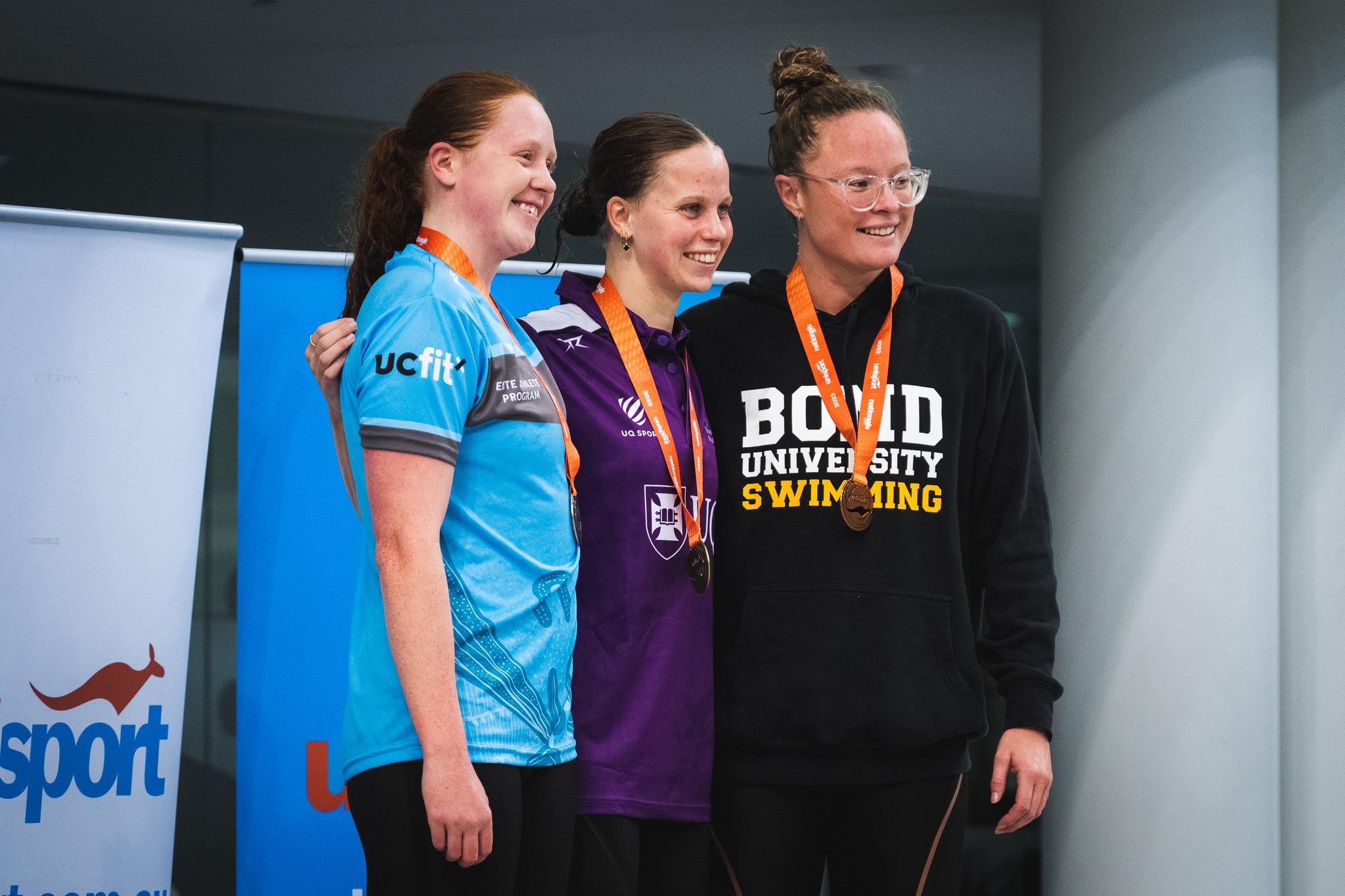 The latter was alongside six other UC athletes, including fellow scholarship recipient Jasmine Greenwood . Kayla also broke a UniSport record in the Women’s 400m Individual Medley, recording a time of 4:49:46.