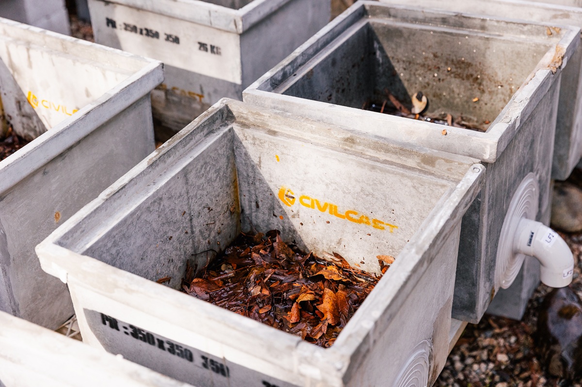 A major experiment in her Honours research saw Megan constructing a system of large concrete pits on campus, filled with “all of the filth out of the gutter – dead leaves, dirt, animal waste, and even the odd Pokemon card!”, to replicate the debris found within any regular street and stormwater drainage system in Canberra.